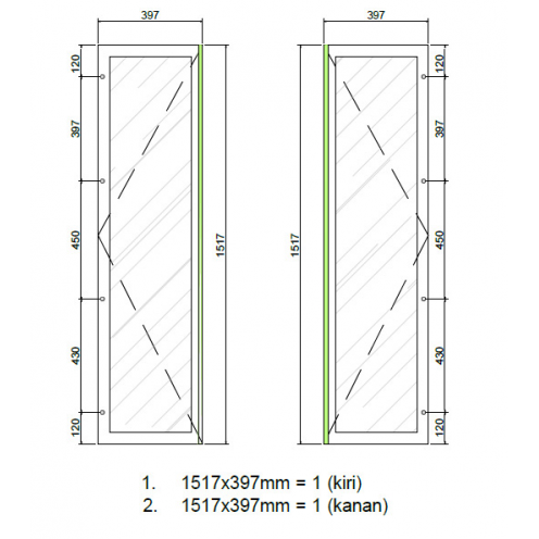 Victory Aluminium Frame AL318 V Kaca Polos 5mm 397x1517 (Kanan dan Kiri) PC Black Sandy 2 Pintu