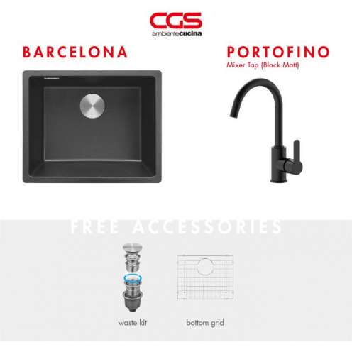 CGS Paket Barcelona Black Kitchen Sink + Portofino Mixer Black Mixer Tap