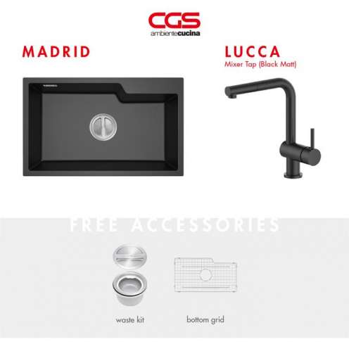 CGS Paket Madrid Rockgranite Sink Black + Lucca Black Tap